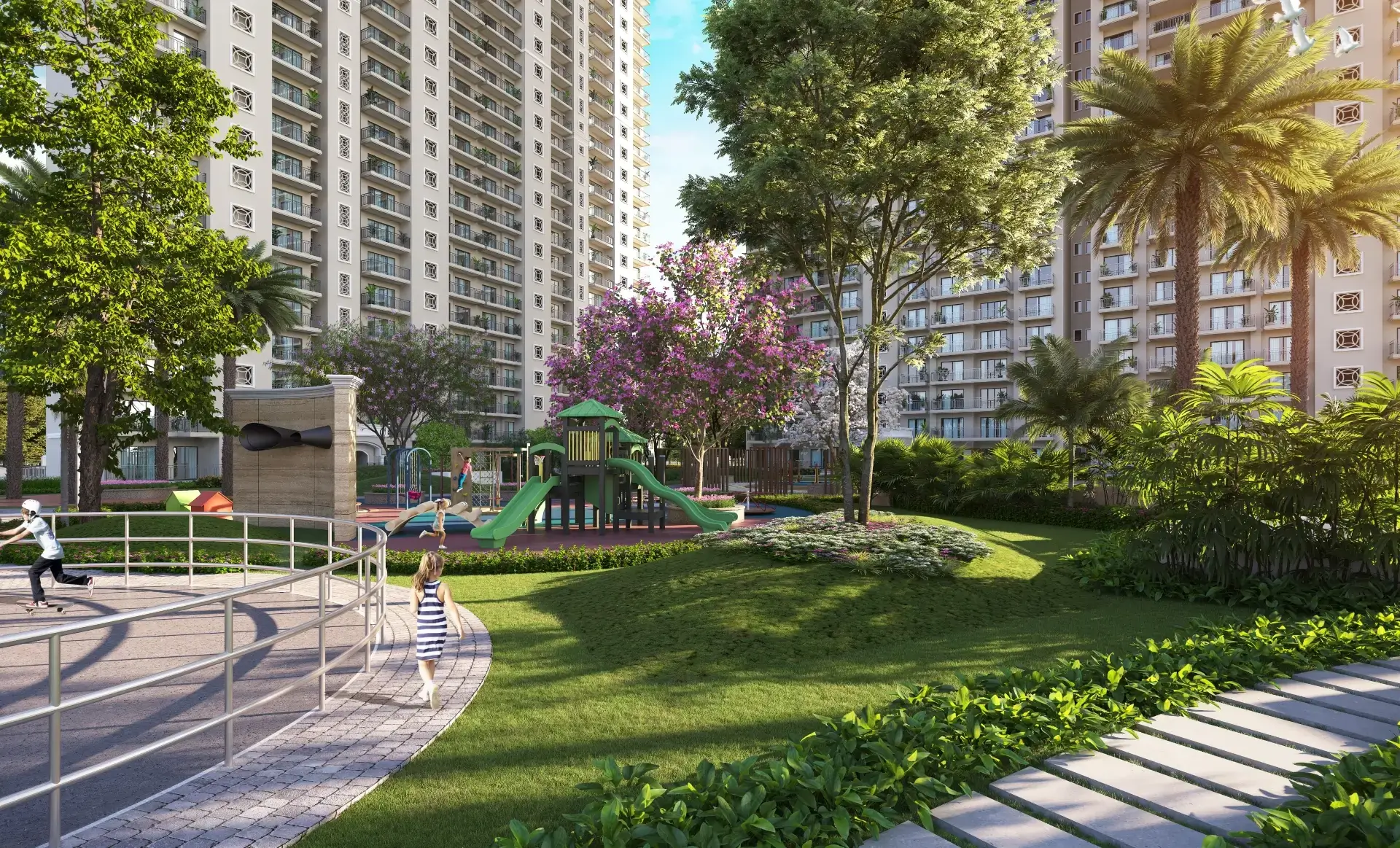Step into lush, landscaped surroundings designed to bring peace and balance into everyday life. From tree-lined avenues and vibrant gardens to serene courtyards and children’s play areas, the outdoor spaces at ATS Picturesque Reprieves are thoughtfully crafted for leisure, wellness, and community interaction.